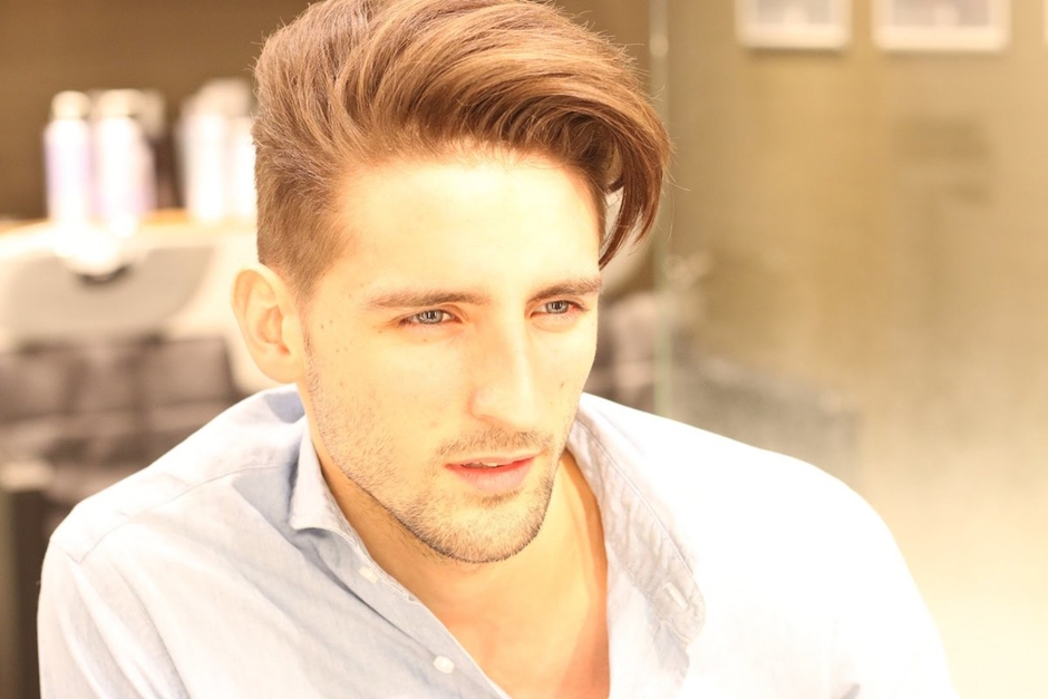 Это не просто стрижка для мужчин, это возможность создать успешный образ. Больше всего такая прическа подходит для представителей среднего и старшего возраста, предпочитающих классику в одежде. Волосы на макушке и затылке нужно будет отрастить до 4-6 см. Затылок и виски укорачивают до той длины, которую требуют образовавшиеся залысины. Укладка прически — гладкий зачес на бок.