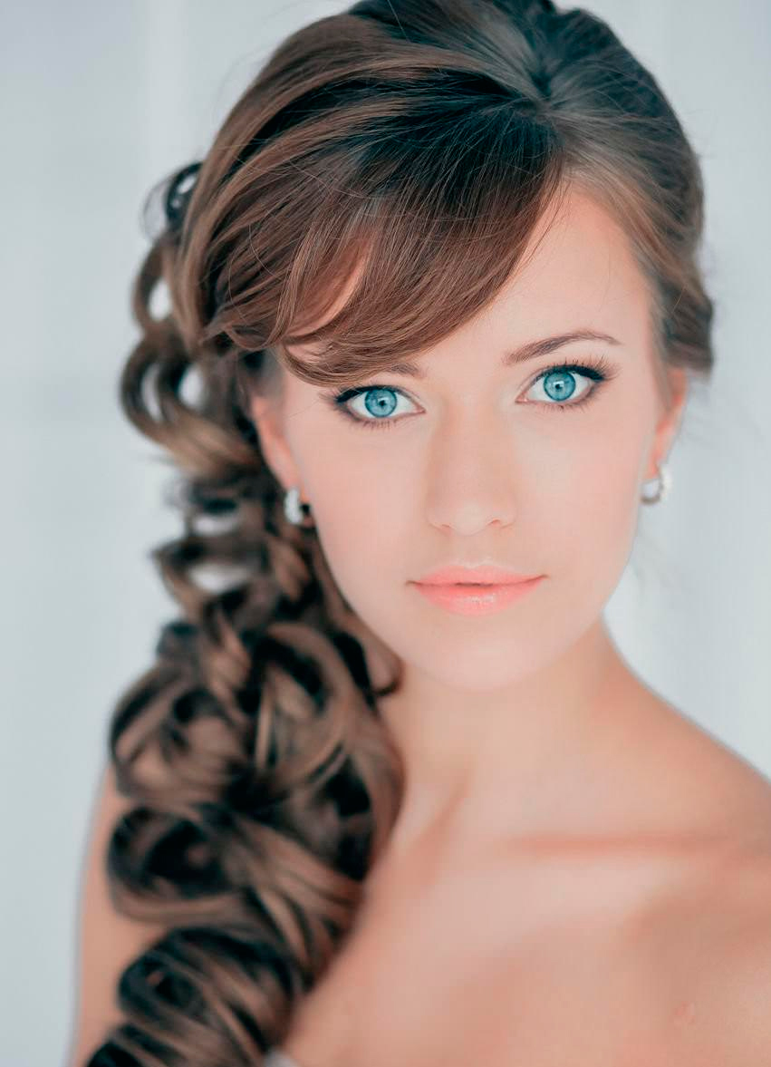 Классической, элегантной выглядит прическа с боковой челкой, подходит для средней длины, волос ниже плеч.