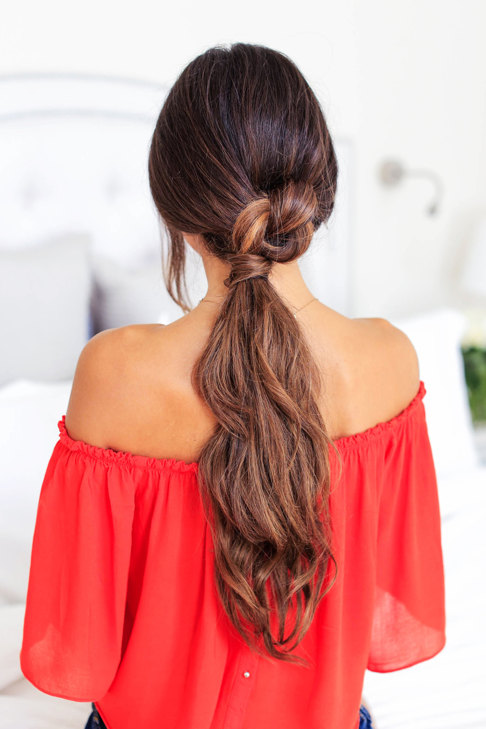 - Разделить ее на две части, сформировать бантик и обкрутить посередине кончиками волос.
