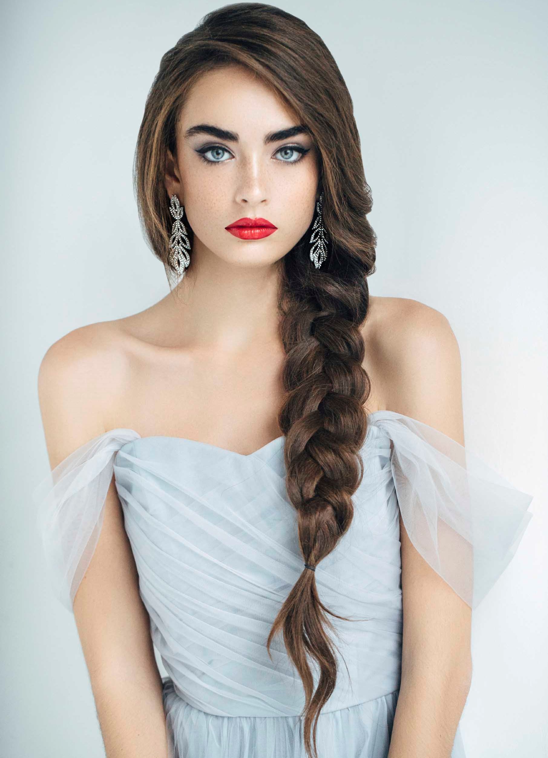 16. Распущенные волосы элегантно украсит коса, заплетенная колоском.