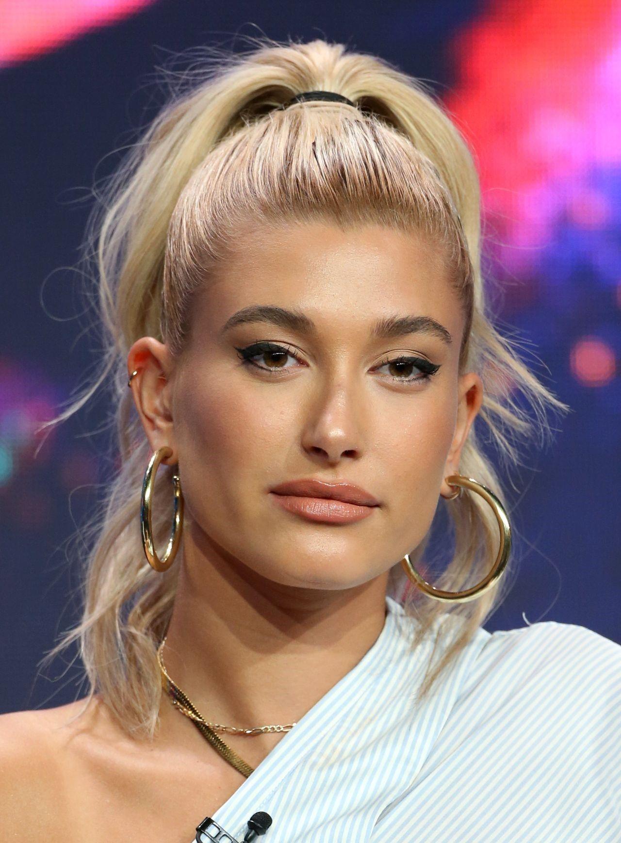 Хвост на затылке или на макушке. Классно смотрятся укладки с небрежным хвостом типа «сделал как попало, и побежал». Тут надо начесать прядки и, вспушив, зафиксировать чем-то. Так любят делать Хейли Болдуин, Кендалл Дженнер и др.