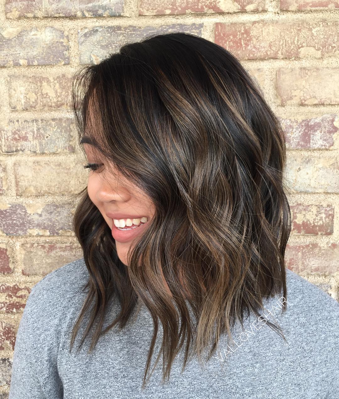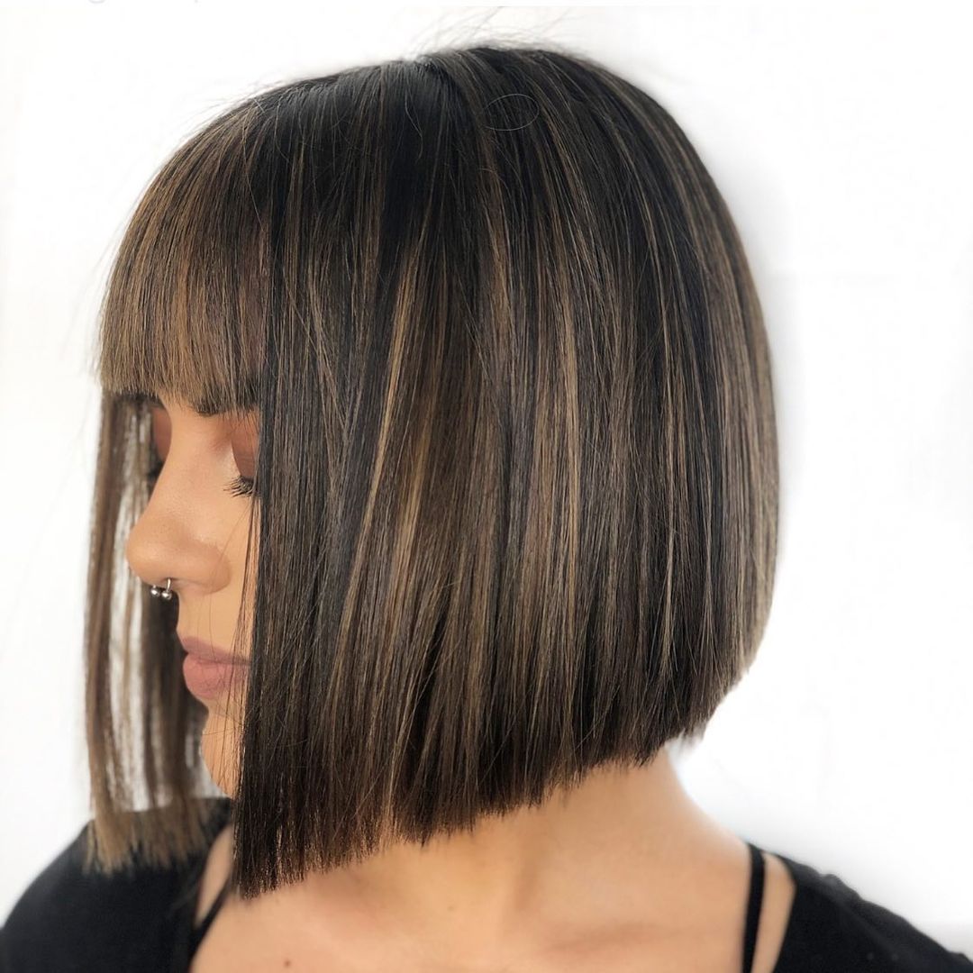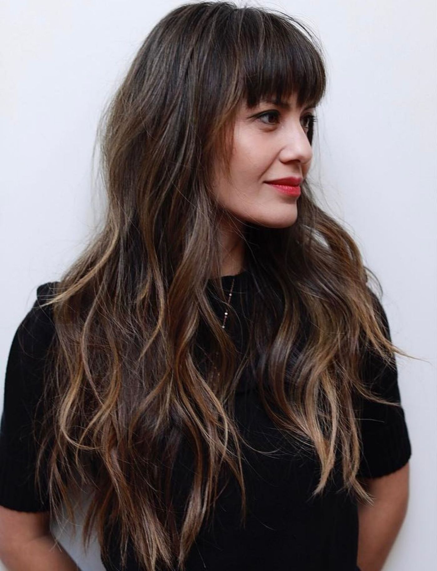 - Длинная челка сочетается со всеми модными техниками окрашивания волос.