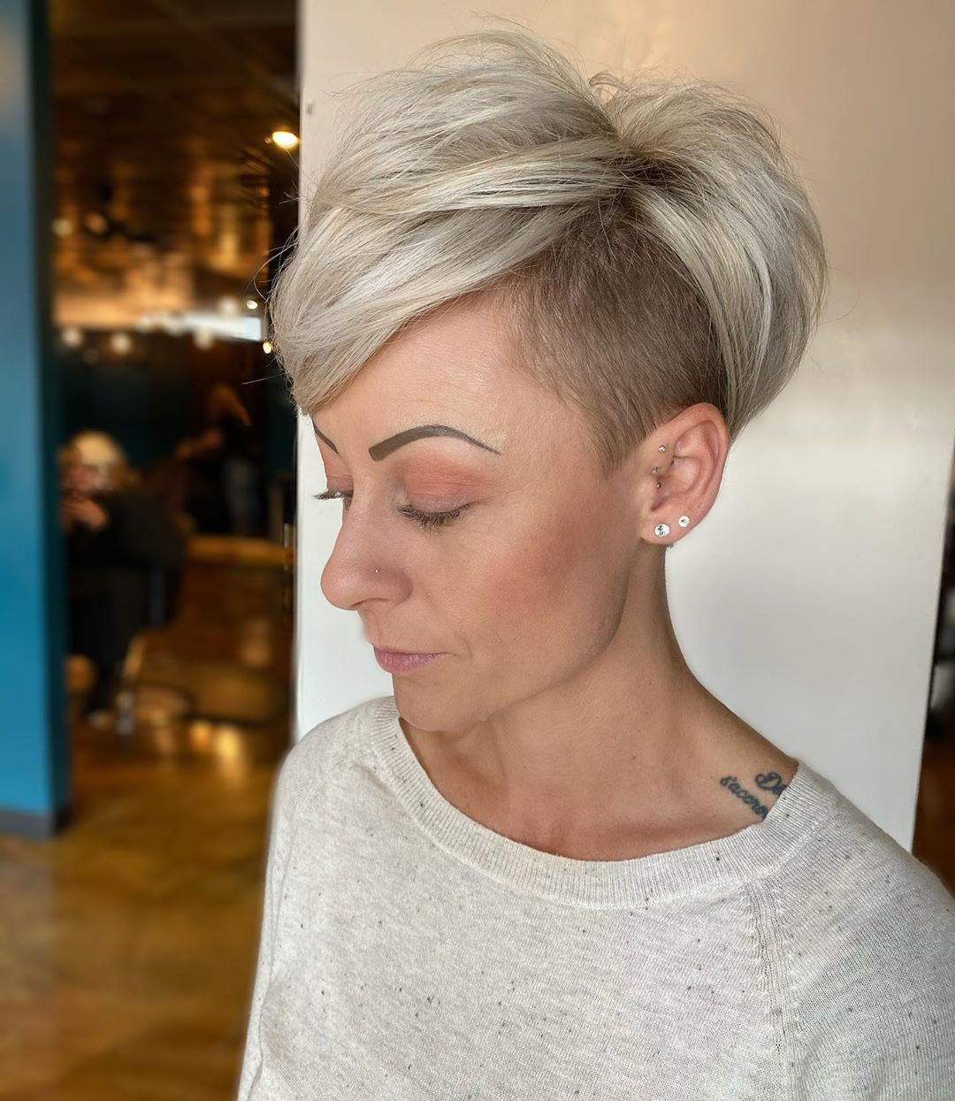 Короткие стрижки для девочек 2024 года предусматривают стильный андеркат. Сочетайте его с выбритым виском – один или два. Отложите ее в сторону или зачешите назад.