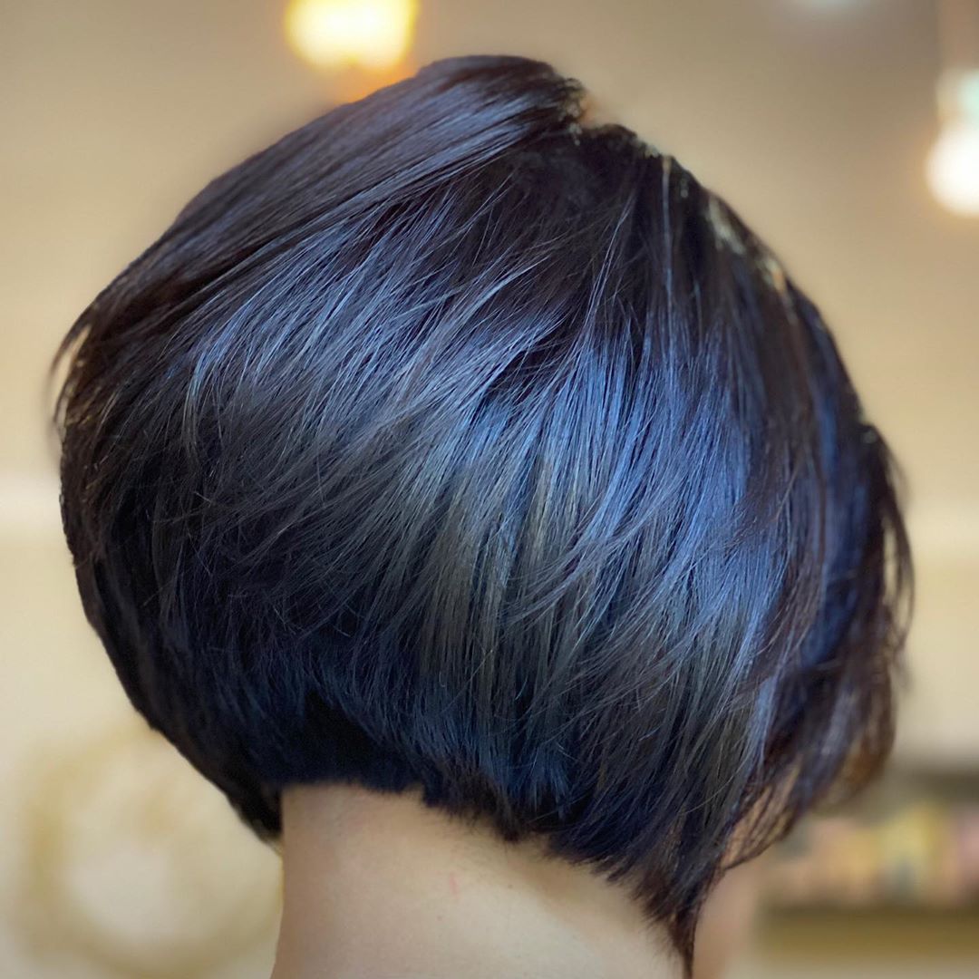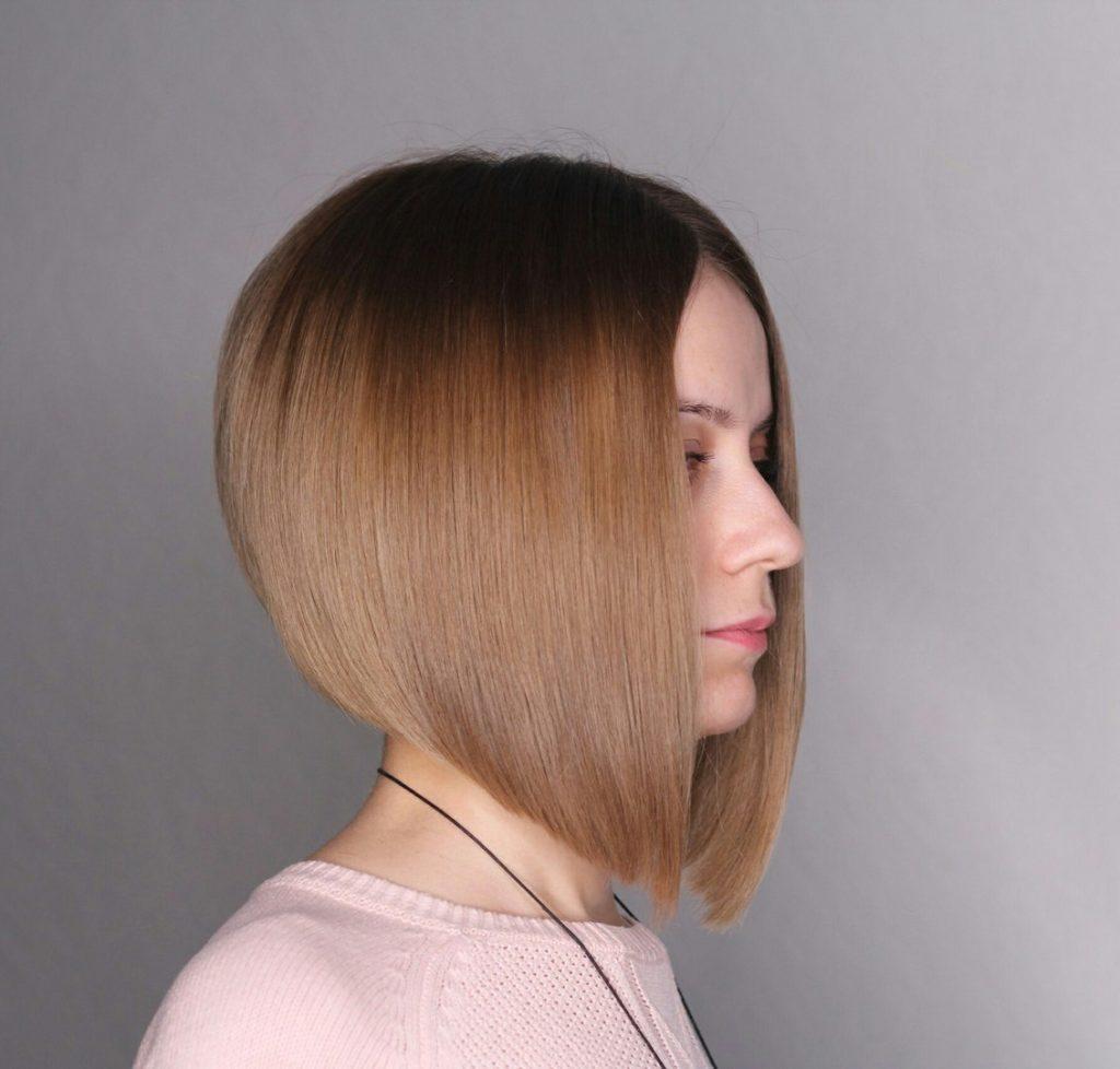 Их длина может быть разной: короткой, средней, длинной. Главное стричь волосы четко по диагонали.