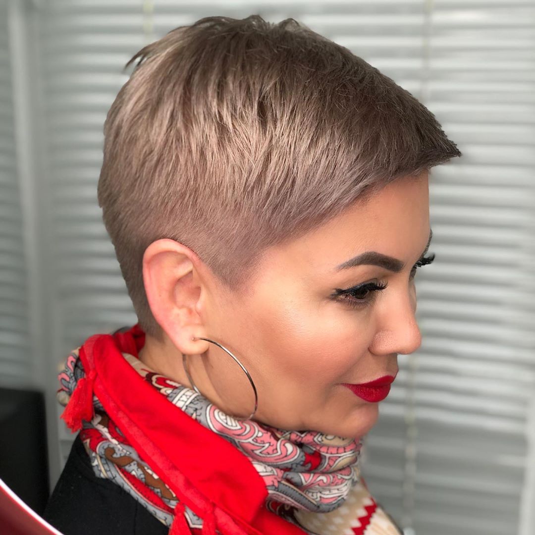 Модные короткие женские стрижки 2024 года также включают в себя все варианты в стиле милитари: от стрижки ежиком до харизматичного минимума с машинкой. Кроме того, такую прическу лучше всего носить с подчеркнуто женственной одеждой: например, платьями-комбинациями облегающего силуэта или короткими платьями с грубыми ботинками и косухой – поиграйте на контрасте.