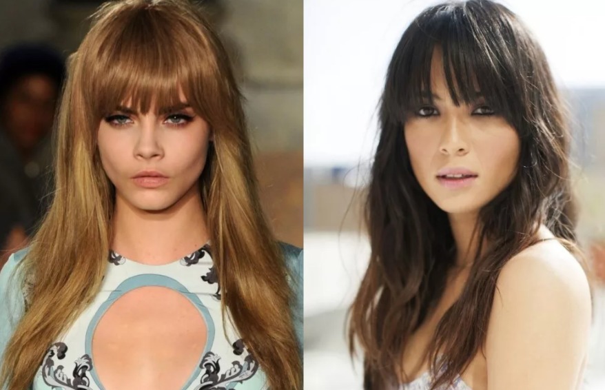 Образ с удлиненной челкой получается женственным и романтичным. Поэтому для длинных волос это идеальный вариант оформления челки. Она укладывается на две стороны. Смотрится очень стильно, подчеркивая красоту лица.