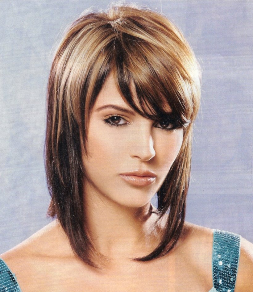 Девушкам с круглым лицом стоит быть осторожным при выборе стрижки, так как она может усилить полноту. Лучше всего круглому типу лица подходят градуированные стрижки с мягкими контурами, слишком четких форм лучше стараться избегать. Удачным дополнением прически станет легкая градуированная челка с асимметрией.