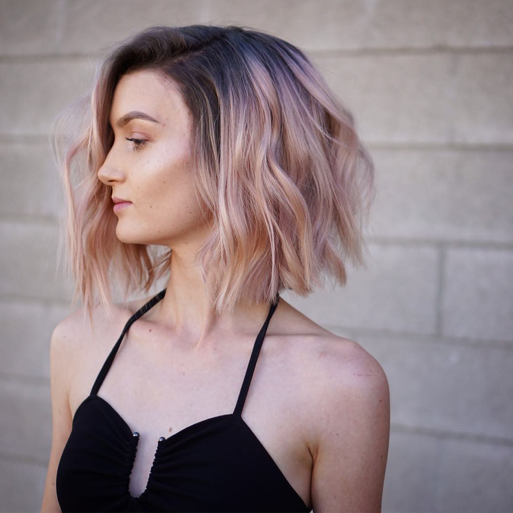 Оттенок розовых волос может быть как холодным, так и с теплым персиковым подтоном. Особенно подойдет розовый блонд девушкам с короткими стрижками. Если волосы светлые, то можно попробовать покрасить волосы в розовый самостоятельно.