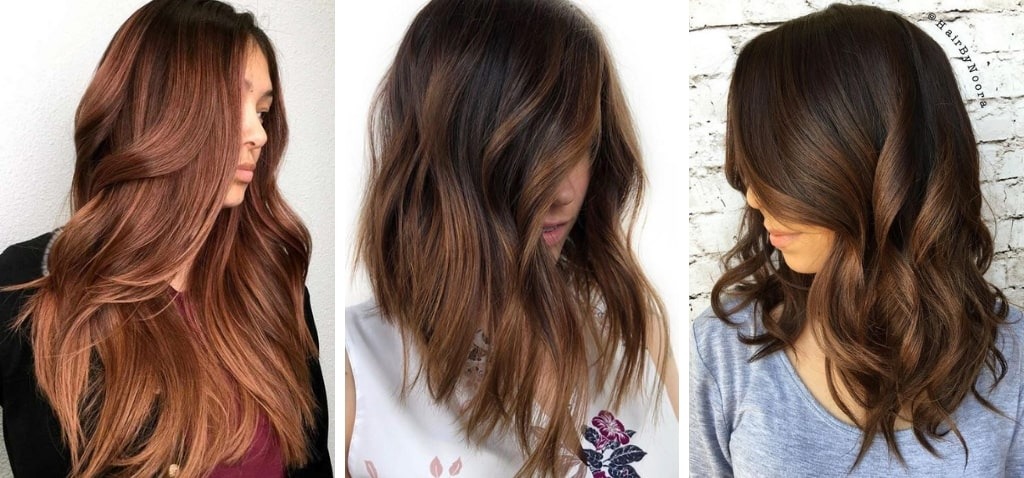- Смуглым женщинам – шоколадный каштановый или сочетание теплых оттенков.