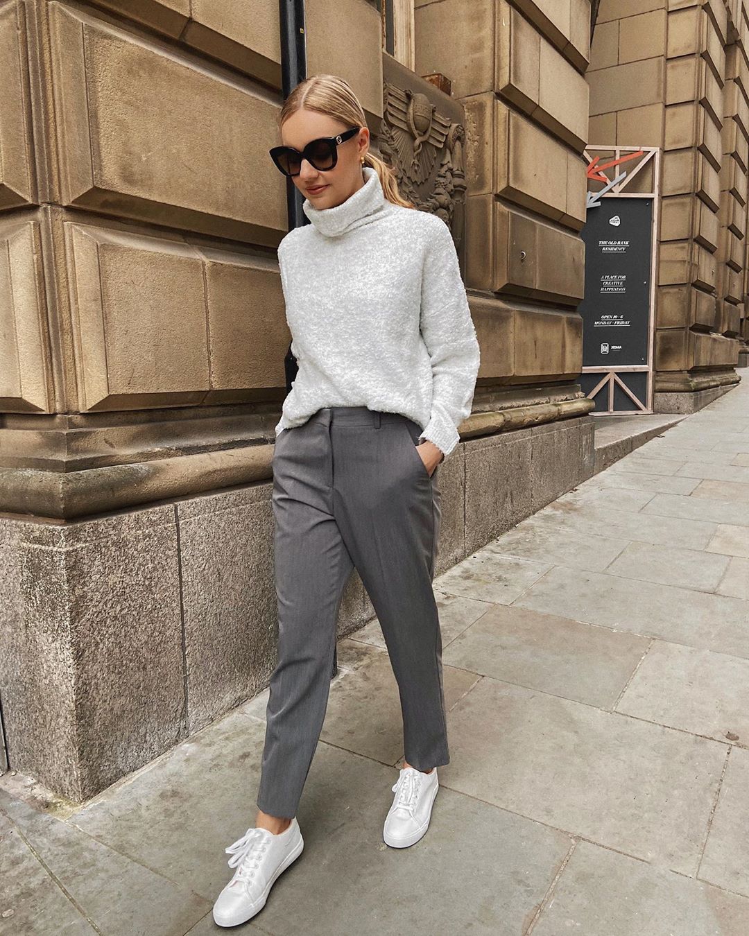 Девушкам 30 лет с красивыми пышными формами стоит отдать предпочтение худи или толстовке, выбрать джинсы или брюки, чуть зауженные книзу и дополнить образ удобной обувью.
