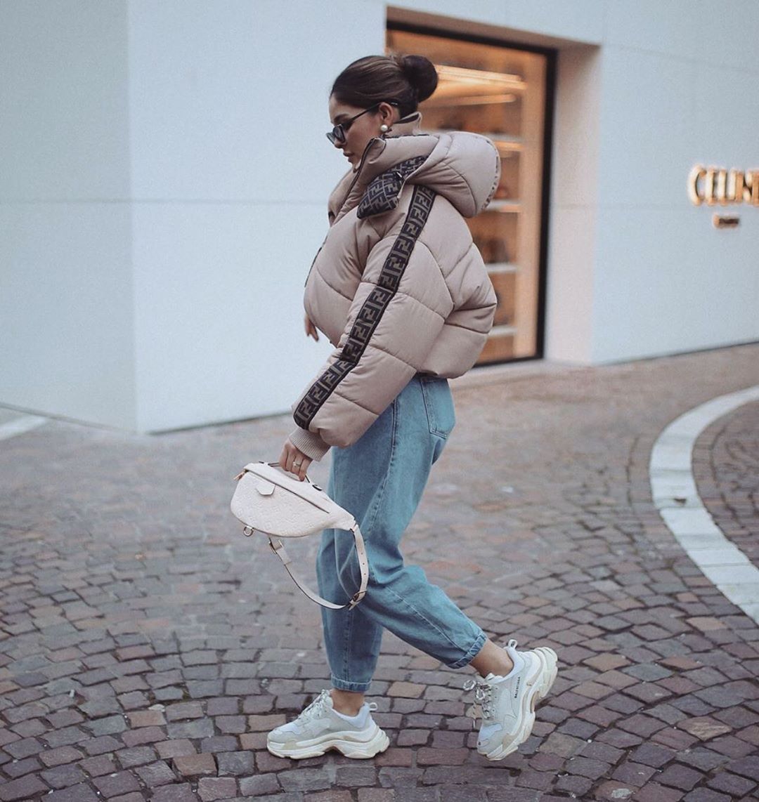 - свитер, тонкий пуховик/бомбер, объемный жакет и иные сочетания.