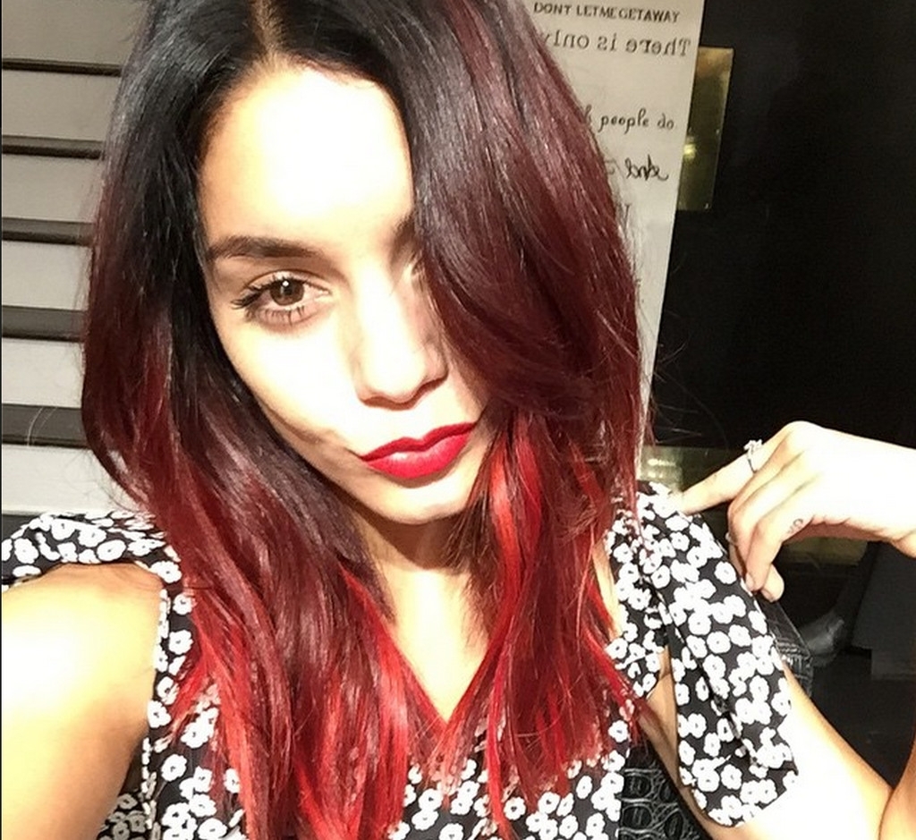 тройной переход от черного к бордовому и ярко-рыжему, как это демонстрирует Ванесса Ханджес.