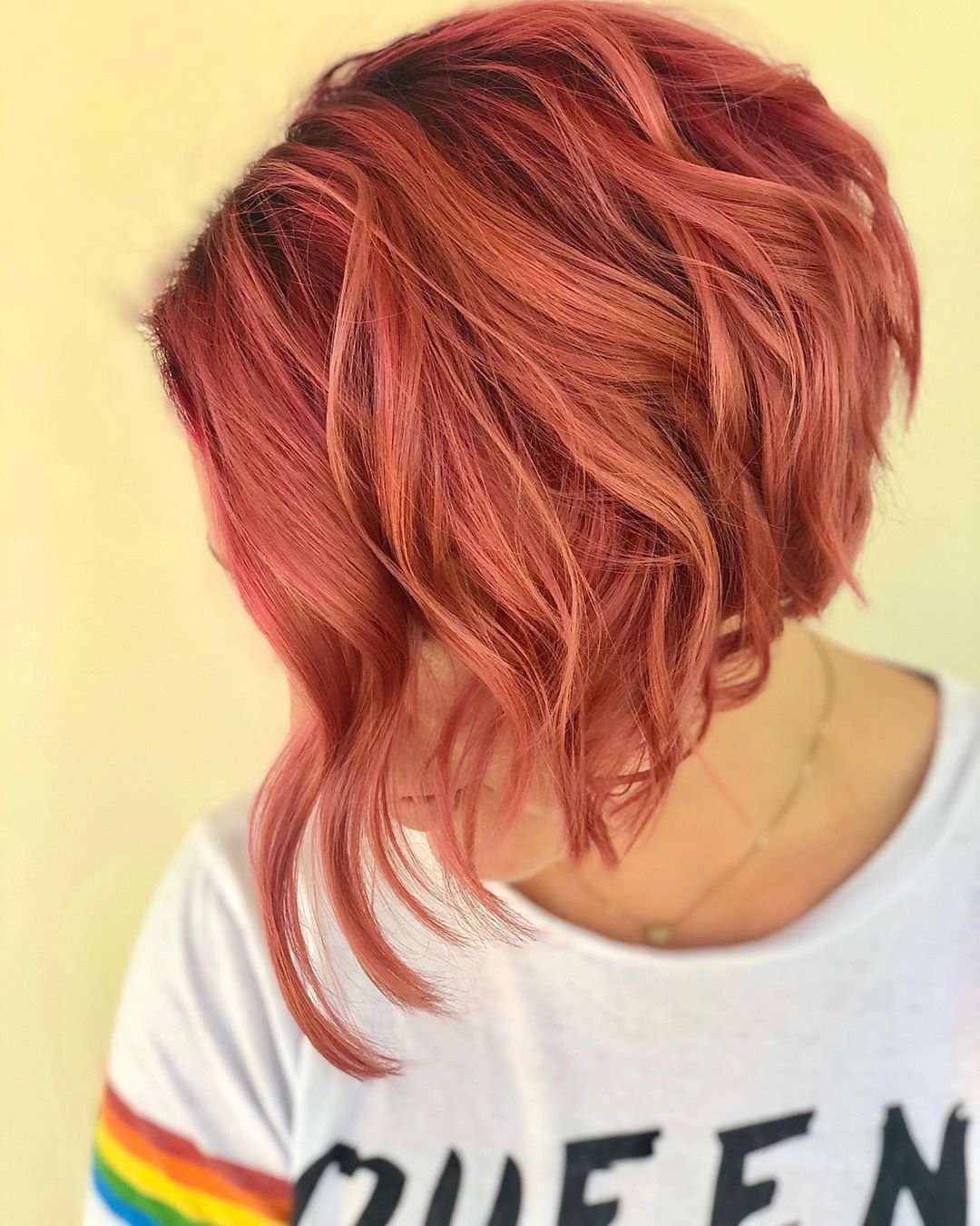 Такая стрижка создает дополнительный объем на макушке, можно также добавить немного асимметрии и поиграться с цветом волос;