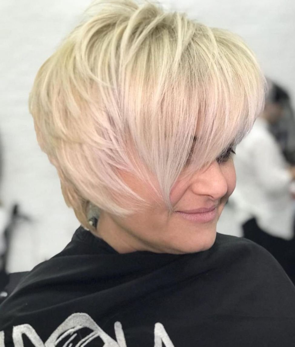 Сохранение спереди небольшой челки – это ключ к овладению молодыми стилями, когда вы старше 50 лет. Если стареющая женщина борется с появлением тонких линий или морщин на лбу, то челка — это прекрасный вариант, чтобы их замаскировать. Попросите вашего стилиста сделать вам пикси с боковой челкой и выпрямите ее, чтобы она казалась еще длиннее.