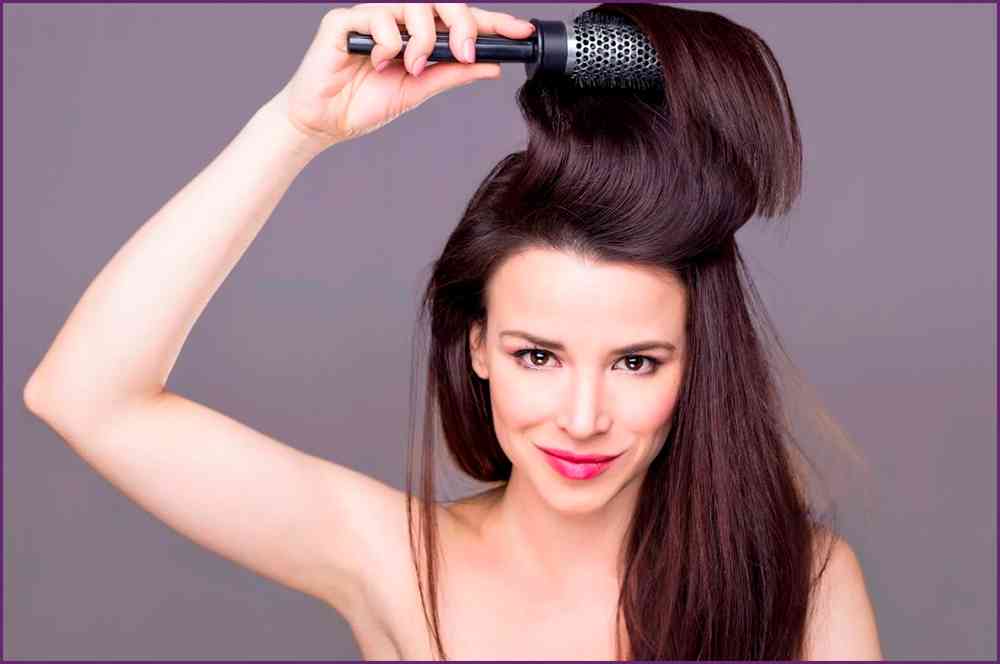 Для придания шевелюре объема необходимо приподнять волосы у корней и аккуратно растягивать щеткой до кончиков.