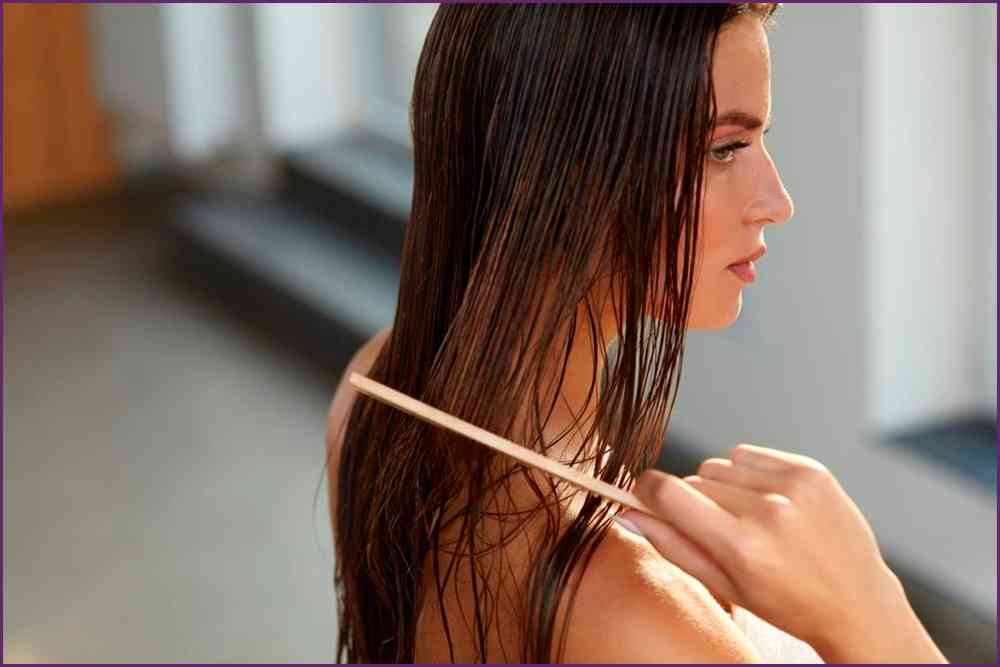 После мытья волос нужно собрать с прядей лишнюю жидкость, обернуть голову полотенцем, промокнуть влагу у корней, через 5 минут снять полотенце.