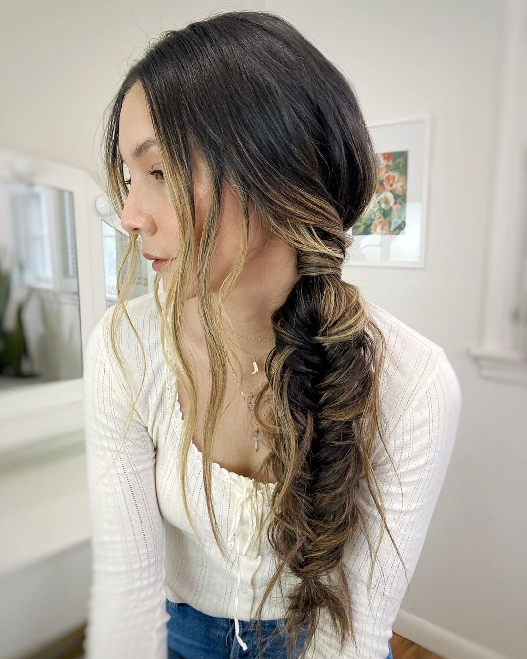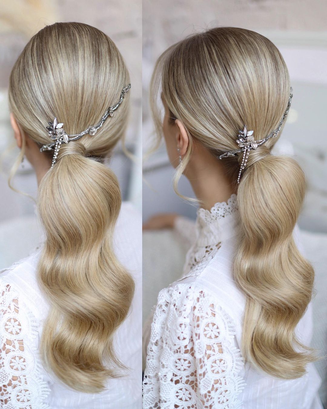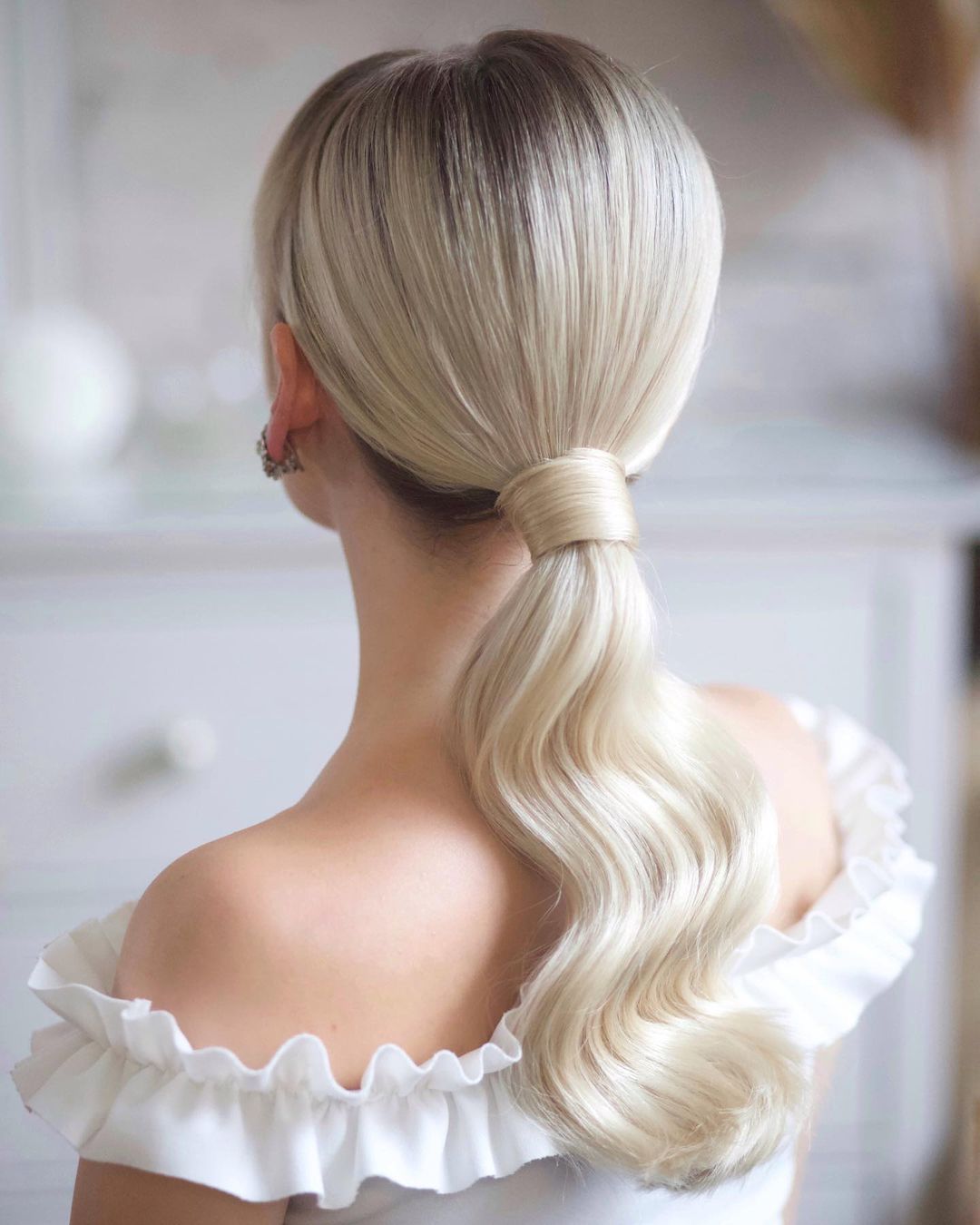В передней части можно ко лбу пустить тоненькую прядь. Последним штрихом сбросьте хвостик в бок.