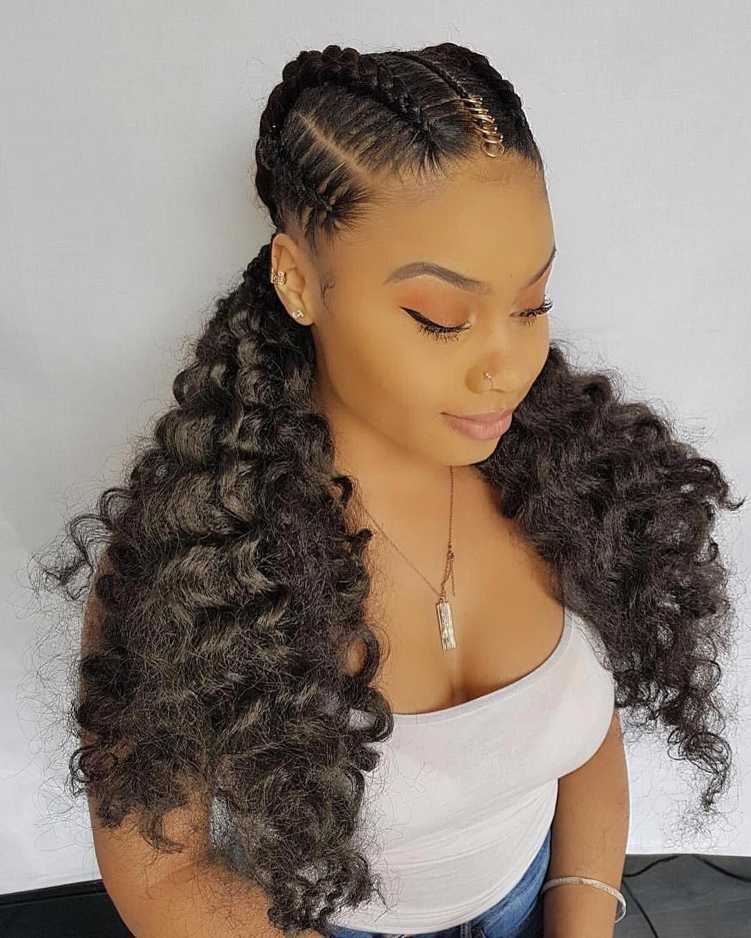 Их можно комбинировать с распущенными волосами, заплетая друг с другом или оставляя по отдельности. А если у вас в волосах есть цветные пряди, косички можно заплести именно из них.