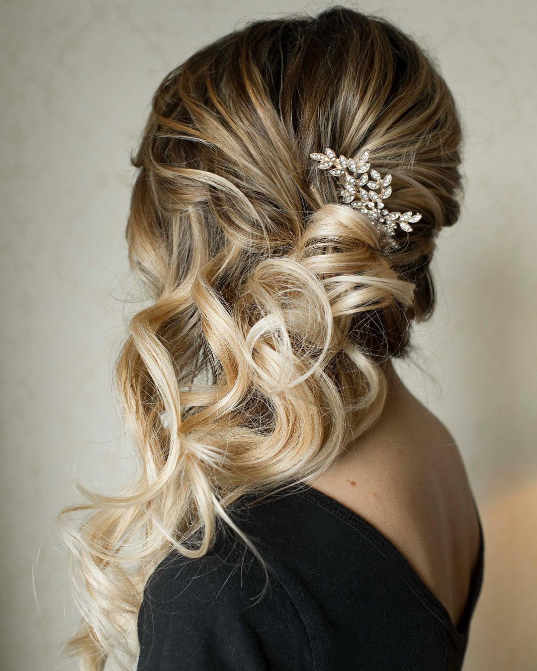 Еще один оригинальный вариант укладки – прическа с локонами на бок. Создается следующим образом: