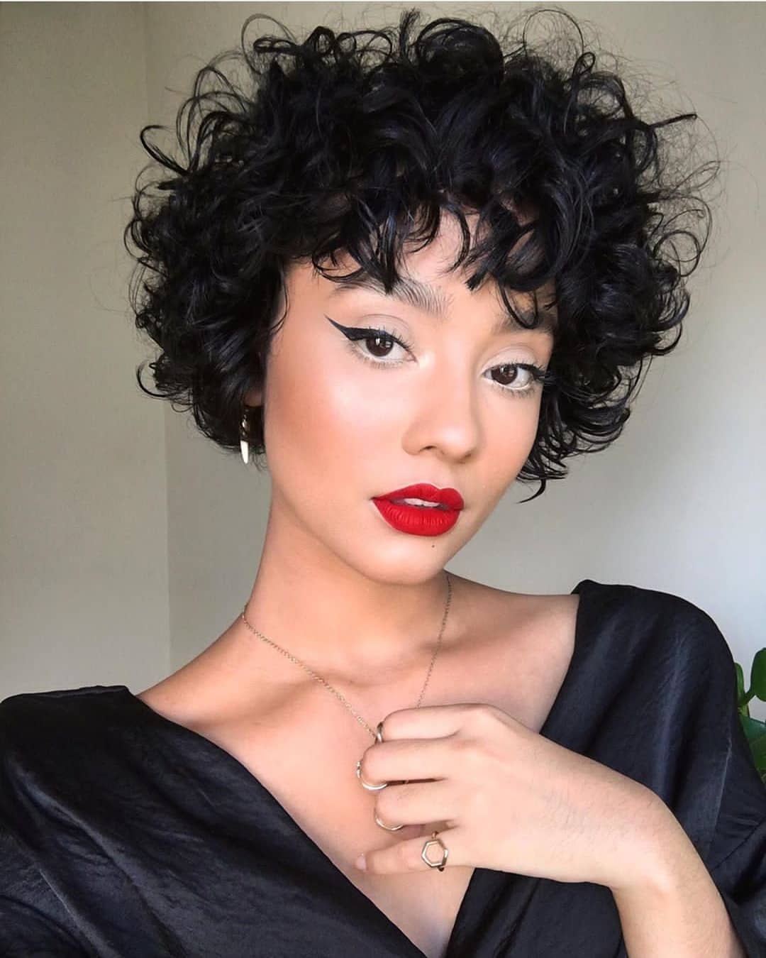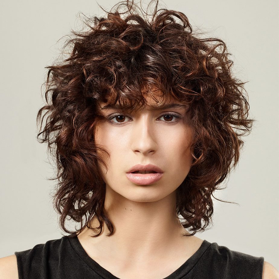 - абсолютно всем обладательницам длинных кудрей следует отказаться от короткой чёлки. Если оставить такую чёлку в естественном состоянии, то маленькие кудри будут смотреться некрасиво. Если же её выпрямить, то на фоне остальных завитков прямая чёлка будет выглядеть негармонично.