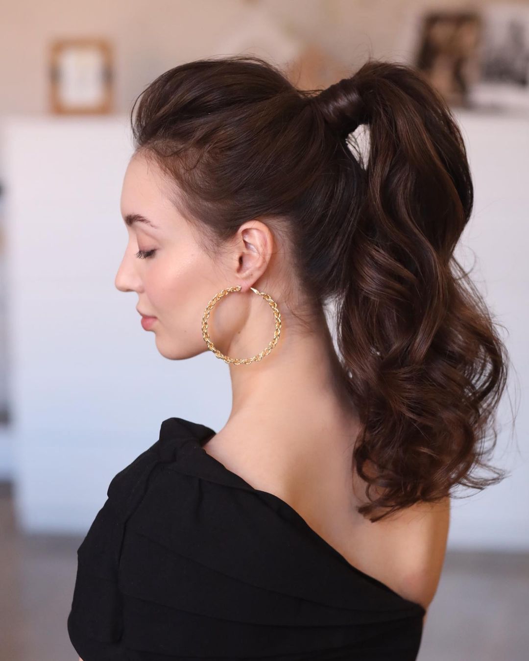 Прически для кудрявых волос не могут обойтись без красивых хвостов – объемных, пышных и стильных.
