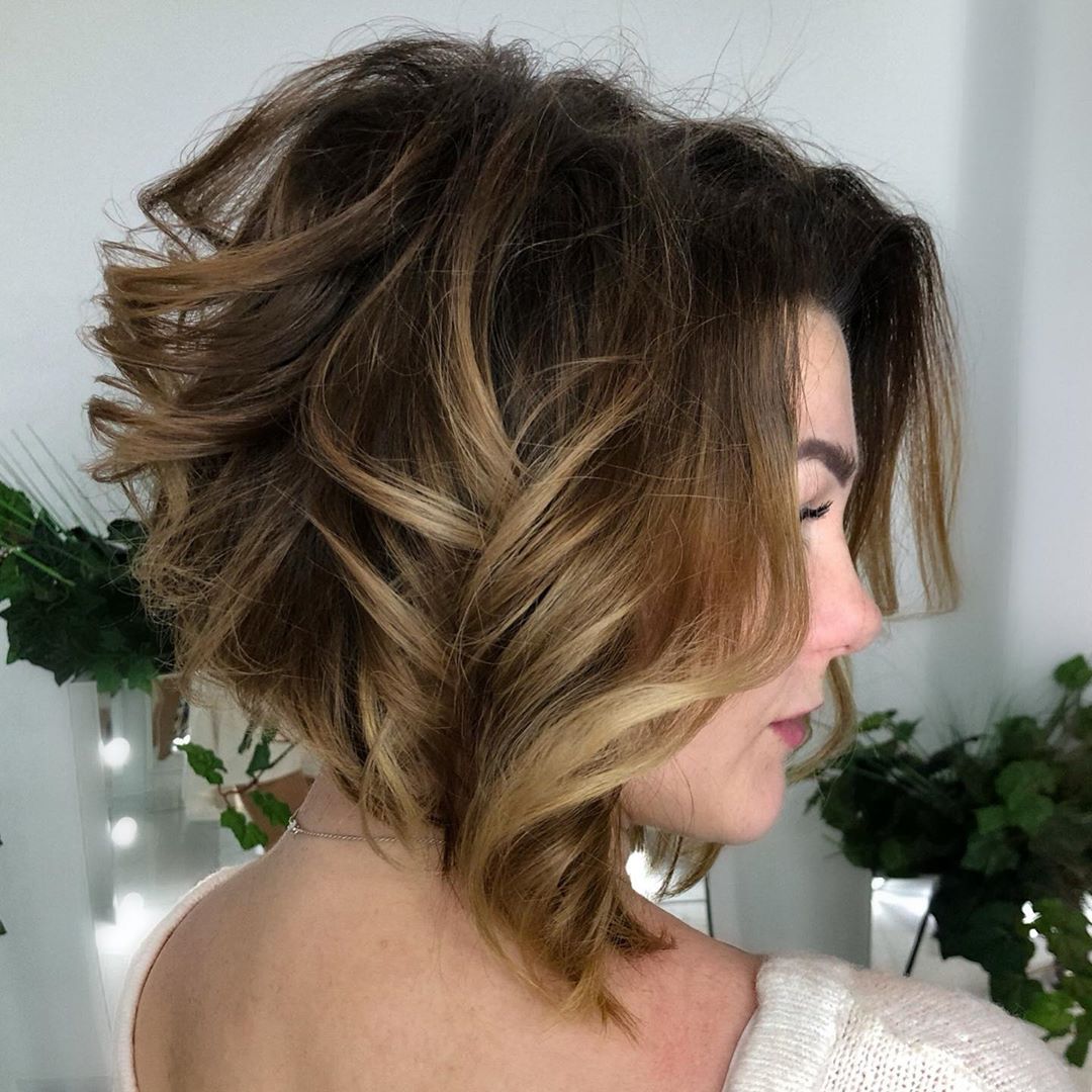 - причёска с градуировкой вокруг лица будет смотреться на дамах с прямоугольной или треугольной формой. Кудрявые прядки создадут нужный объём вокруг скул и сделают лицо пропорциональным;