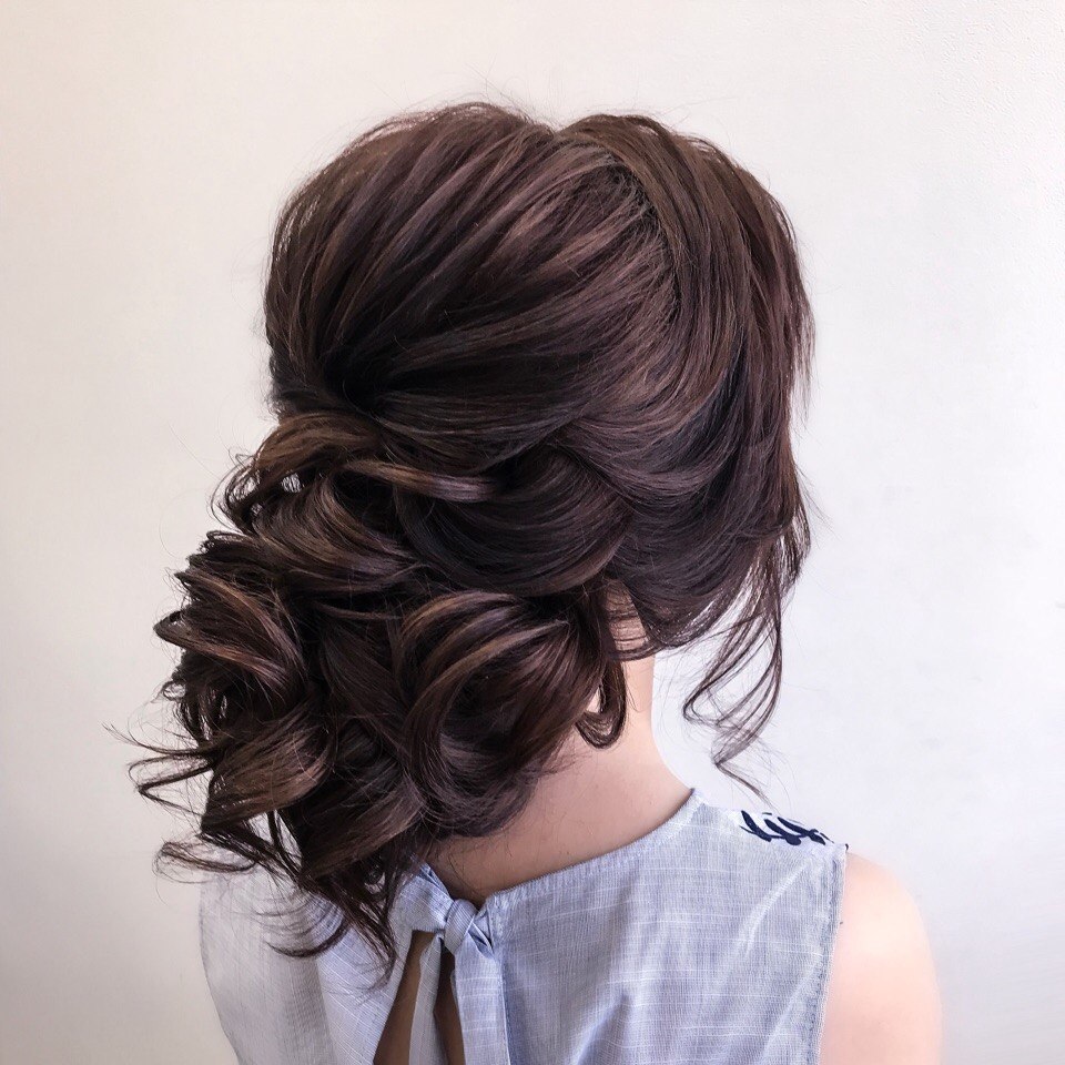 Подобная прическа будет очень красиво дополнять длинное платье.