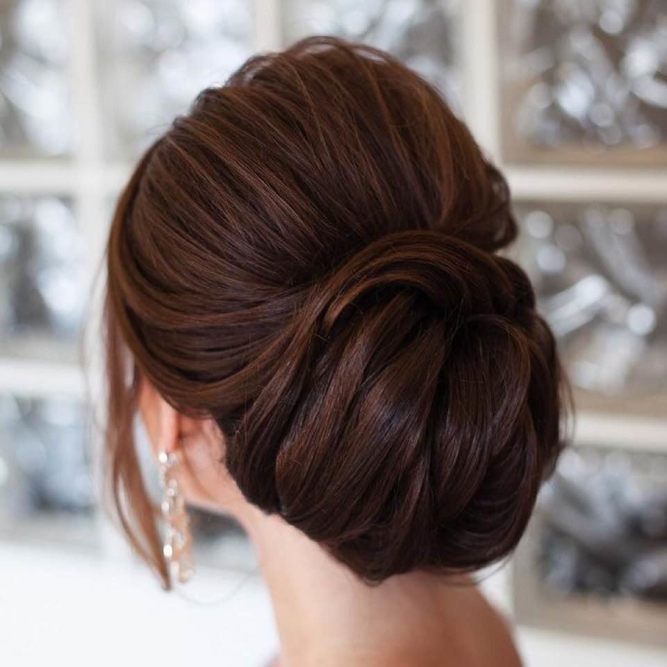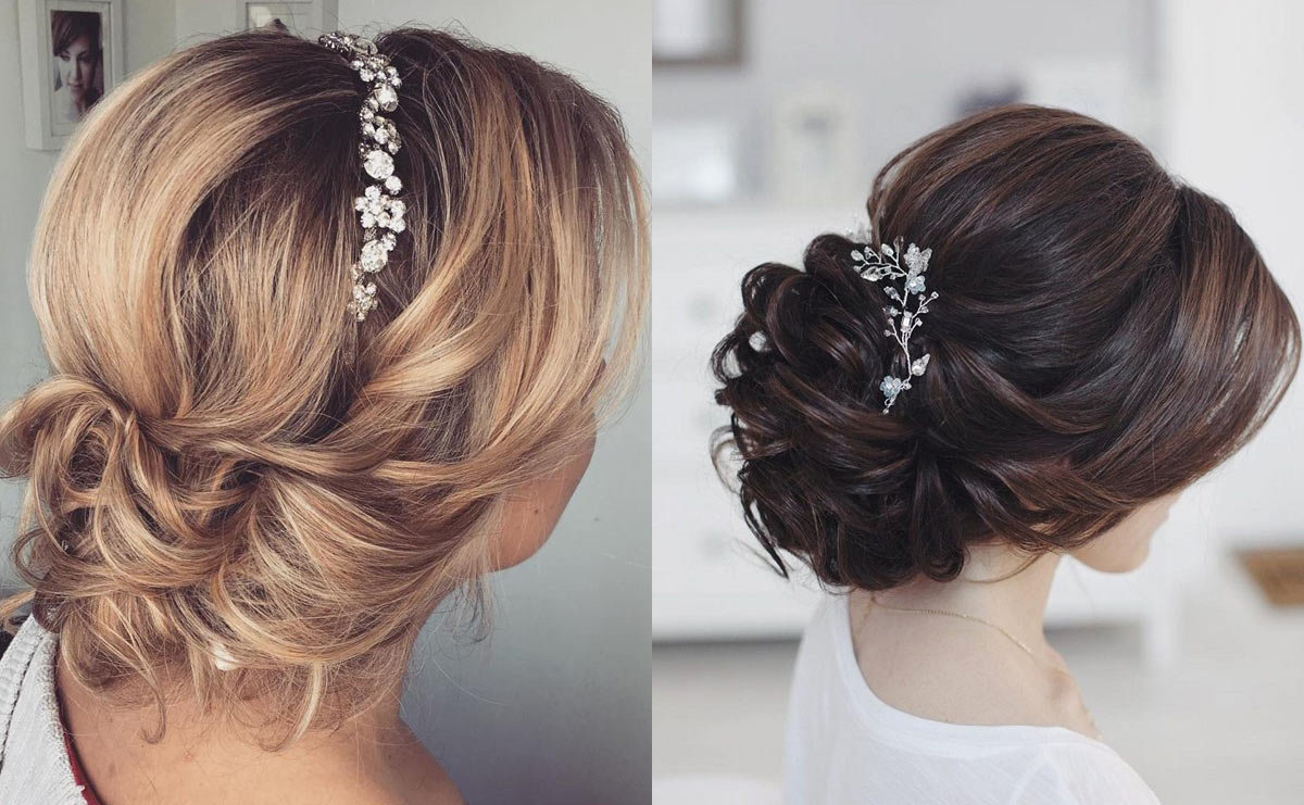 Низкий пучок делают на затылке, он может быть идеально гладким или слегка небрежным. Позвольте нескольким прядям свободно свисать вокруг лица. Можно завить эти пряди, чтобы добавить в прическу романтических ноток.