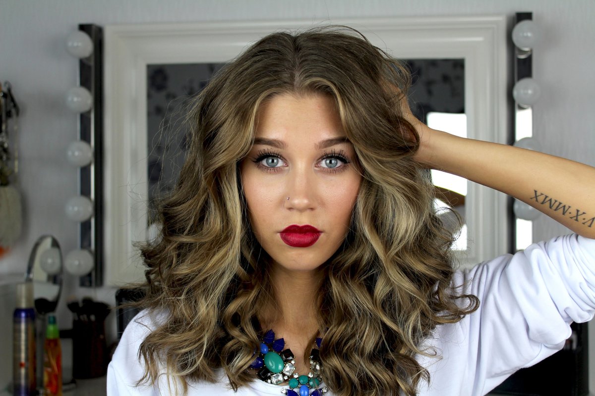 Для начала необходимо немного подкрутить локоны на крупную плойку. Пряди передние обязательно должны быть накручены по направлению от лица. Если вы обладательница очень тонких волос, можете воспользоваться специальным порошком для придания объема.