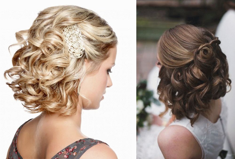 Использовать кудри можно девушкам с короткой стрижкой. Косой пробор, приподнятая челка и подкрученные концы — идеальная композиция для классического платья.