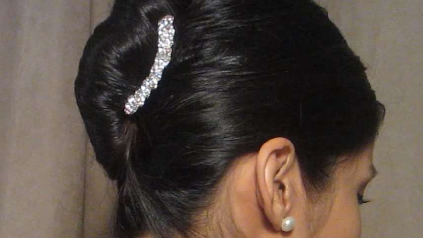 - расчесываем волосы, скручиваем в пучок и закрепляем шпильками.