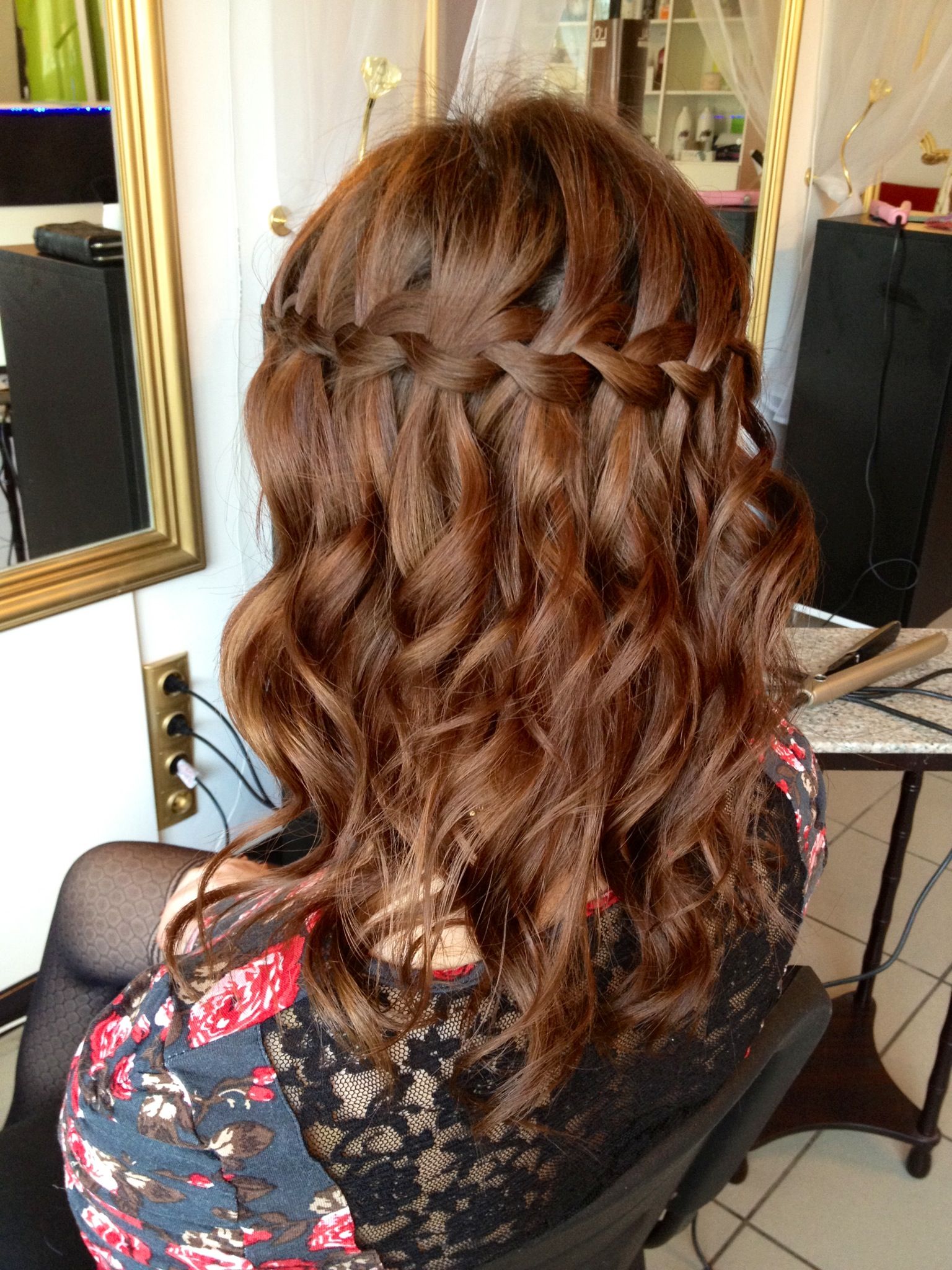 Элегантный водопад. Это еще один из способов совместить плетение с распущенными прядками, и, даже не имея очень длинных волос, получить шикарную укладку.