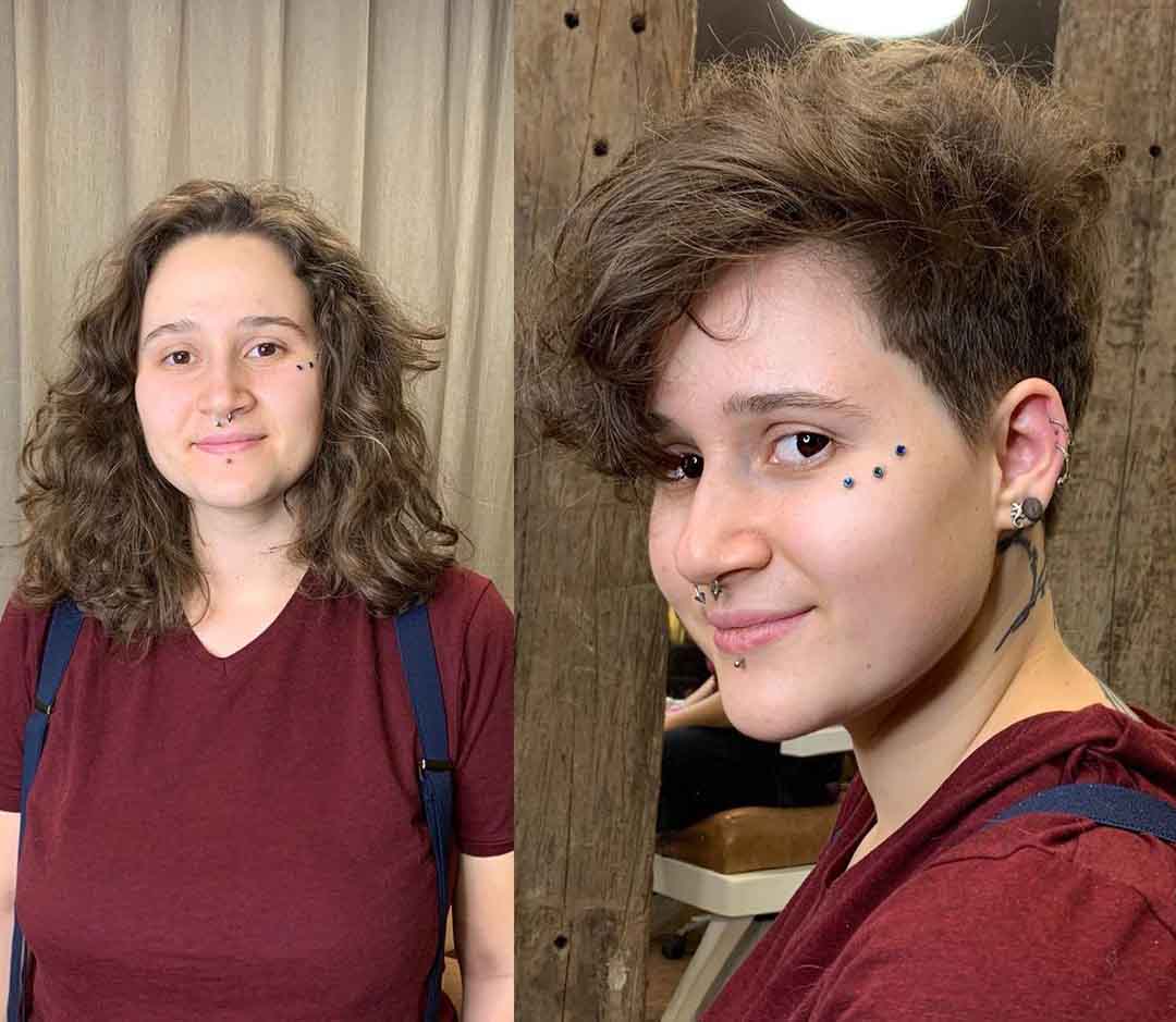 Стрижка “Пикси” – ультракороткий вариант стрижки идеален для тех, кто хочет максимально удобную и легкую в уходе прическу. Кудрявые волосы хорошо держат форму пикси, создавая красивые скулы и объем.