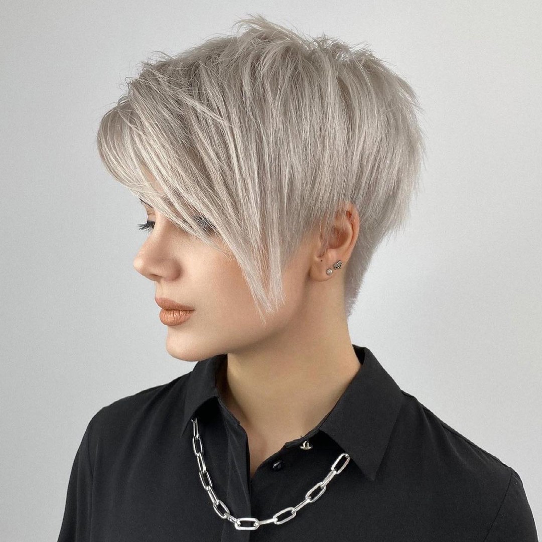 В короткой стрижке нет ничего дурного. Она открывает лицо, освежает, молодит. При этом мы говорим «нет» вариантам, требующим многочасовую укладку и тонны лака, чтобы закрепить результат. Например, стрижке с текстурированными кончиками, которые, по замыслу парикмахера, должны торчать наружу. Или обратному маллету, где затылок и макушка коротко выстрижены, а лицо с одной стороны обрамляет длинная густая челка. Пора отказаться и от короткой стрижки с длинным хвостом, закрывающим шею. Такая испортит любую даму, так как короткие волосы и закрытая шея — вещи несовместимые.