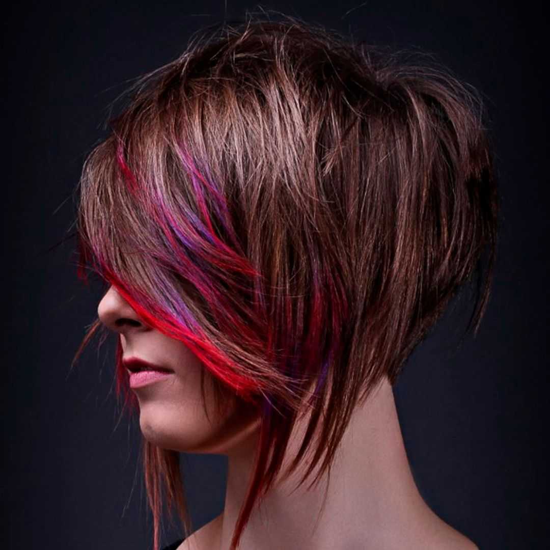 Градуированный боб с удлинением – это решение с короткими затылочными и длинными височными прядями. При этом сам вариант удлинения может выполняться в различных техниках, что приводит к появлению ярких и контрастных сочетаний.