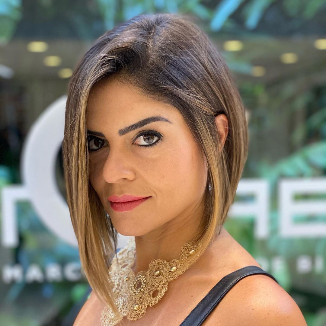 Идеально подходит для тех, кто любит носить среднюю длину. Прямая челка, но не очень густая, открывающая часть лба. Выберите антивозрастную линию средств для мытья и кондиционер чтобы сделать прическу идеальной.