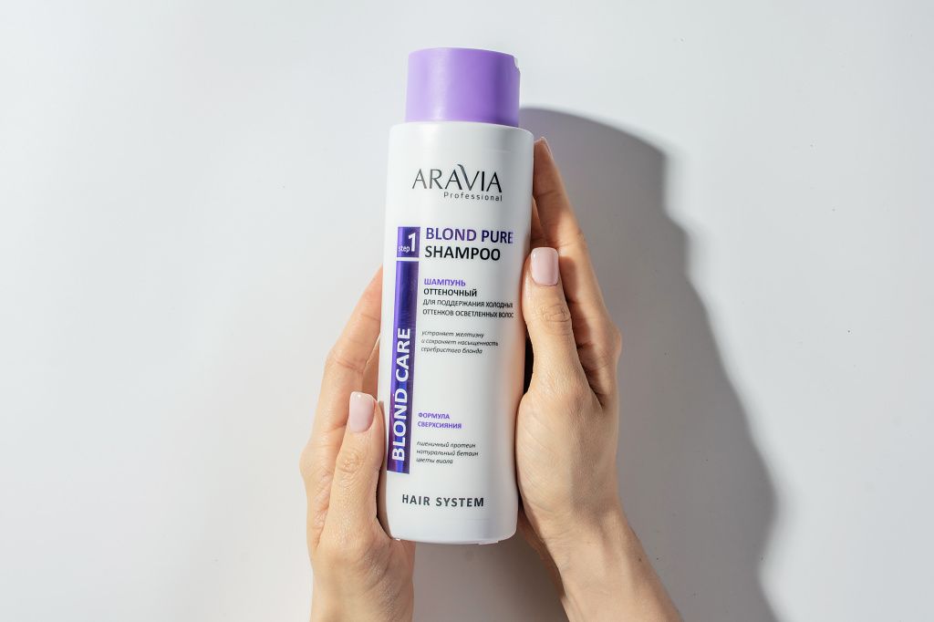 Оттеночный шампунь Blond Pure Shampoo — «платиновый магнат» в системе ухода за волосами и кожей головы HAIR SYSTEM от ARAVIA Professional. Шампунь для окрашенных волос предназначен для устранения нежелательной желтизны и наполнения ваших волос сиянием цвета и роскошным серебристым блеском холодного платинового блонда. Помимо своей основной задачи – нейтрализации желтого оттенка обесцвеченных волос – шампунь выполняет еще и ухаживающую функцию: бережно очищает волосы от загрязнений и создает барьер от быстрого вымывания цвета.