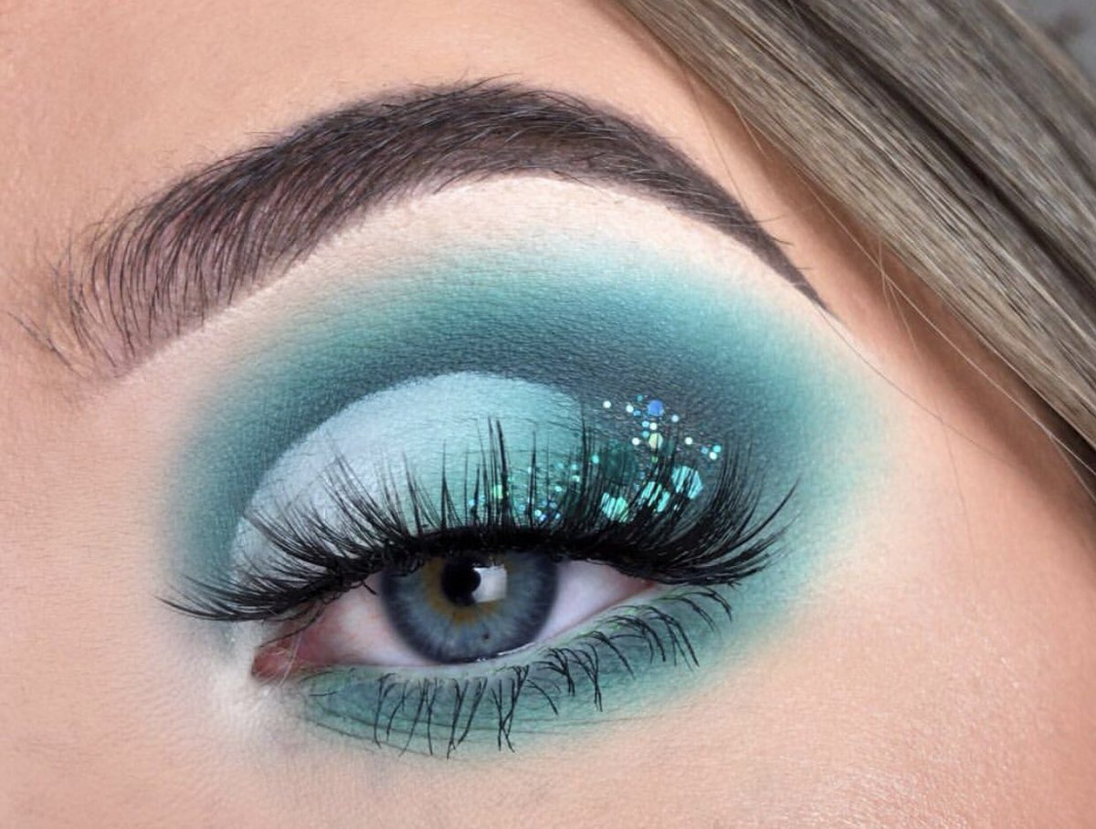 Макияж, выполненный в бирюзовых, голубых и изумрудных тонах, является главным трендом в сезоне 2024. Еще один хит этого года – шикарный мейкап с золотыми тенями, разбавленными декоративными блестками.