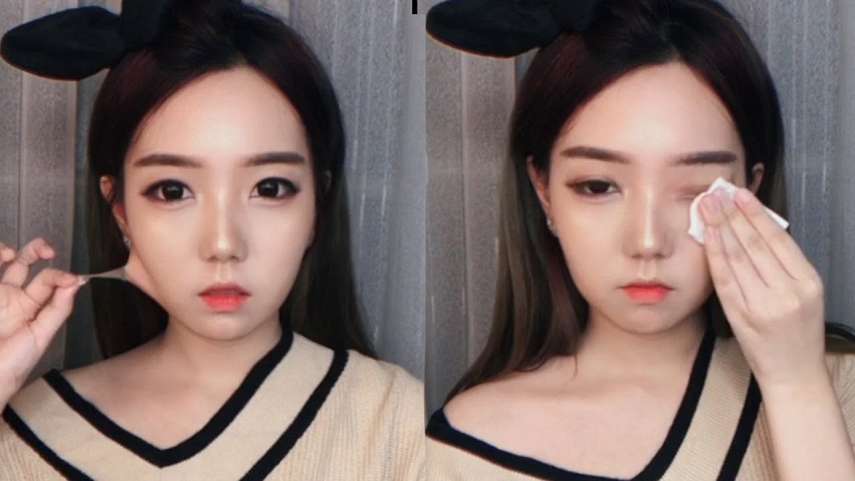 Как и при всех других техниках, качественно и аккуратно исполненный азиатский макияж начинается с равномерного распределения основного тона по всему лицу. Тщательно растушевав все границы средства, на 1 тон светлее оттенка кожи, необходимо дополнительно высветлить треугольник, который образуют нижнее веко (основание треугольника – линия между внутренним и внешним уголком глаза) и крыло носа. Лучше всего с этой задачей справится консилер со светоотражающими частичками, нанесенный полупрозрачным слоем при помощи спонжа и дополнительно растушеванный подушечками пальцев. Закрепите тональное средство рассыпчатой пудрой, а консилер – матовыми тенями на 1-2 тона светлее кожи. Теперь лицо подготовлено для коррекции. Рекомендуется отдать предпочтение сухим текстурам – бронзеру или матовым теням
