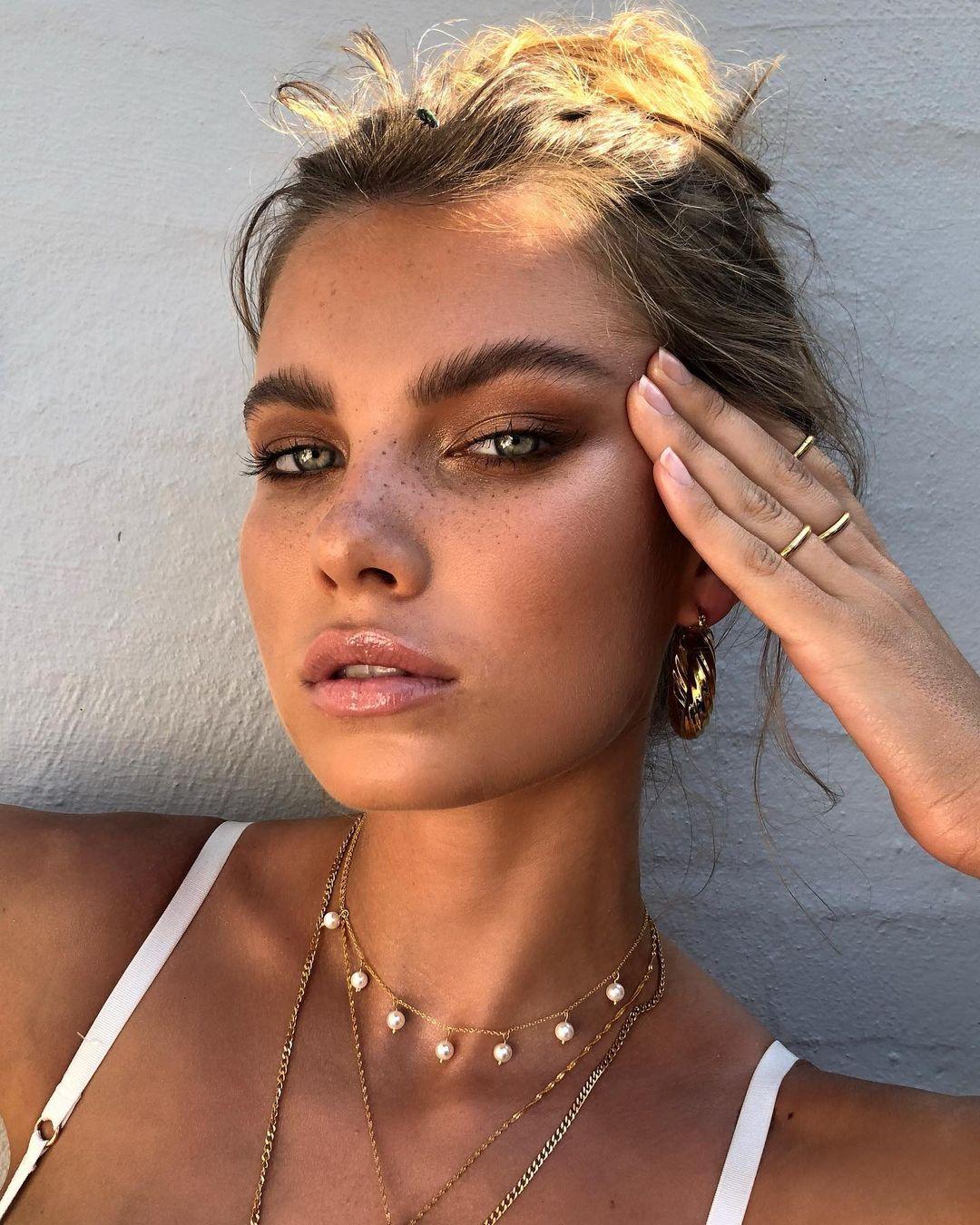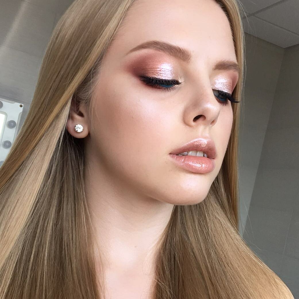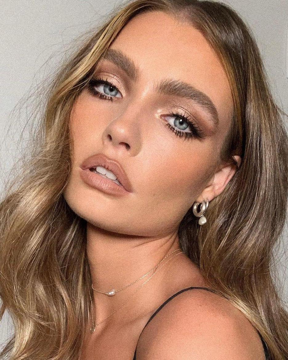 Что касается румян, их стоит выбирать в более теплых тонах – так они отлично будут сочетаться с бронзером и дополнят его. Хайлайтер тоже приветствуется, но его лучше брать с золотистым подтоном. На губах предпочтительнее стильный нюд – персиковый, светло-коричневый, пыльно-розовый. Текстура – на твое усмотрение. Можно добавить продукт с блестящим финишем, а можно сделать выбор в пользу матовых или полуматовых помад.