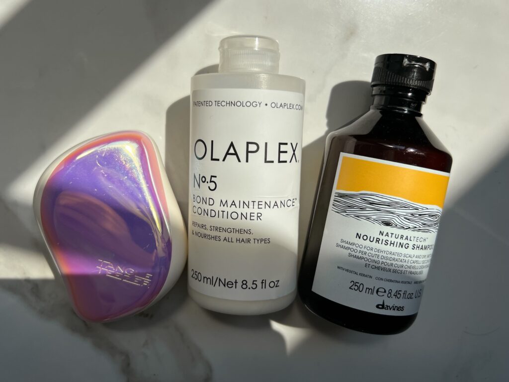 В целом, я не привязываюсь к определенным продуктам для волос и часто пробую новое. Не замечаю большой разницы от разных средств и иногда пользуюсь даже отельными шампунями. Сейчас мою голову увлажняющим шампунем Davines и использую кондиционер Olaplex.