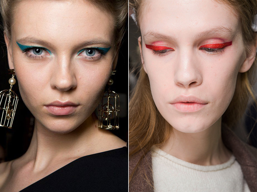 Так, в последнем показе per-fall Valentino стилист модного дома Пэт МакГрат соединила в одном макияже красно-черные кошачьи глаза с синими губами.