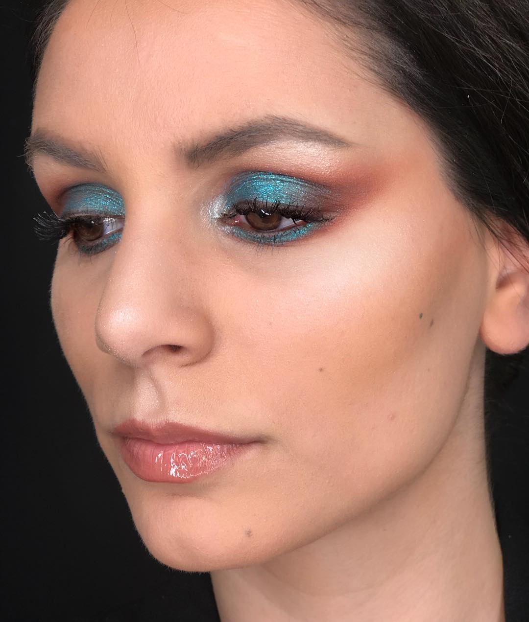 Другой вариант: используйте рассыпчатые блестки и добавьте их в тени для век с помощью кисточки и для растушевки, чтобы получить красивый металлический блеск.