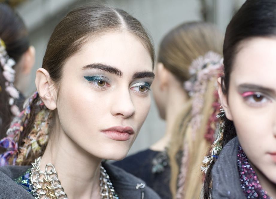 Зимой 2023-2024 гг. брови чуть менее утонченные и вычурные, чем в предыдущих сезонах, но остаются сильным элементом зимнего макияжа.
