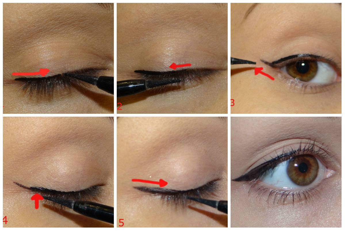 Как нарисовать стрелки на глазах подводкой (поэтапно для начинающих):