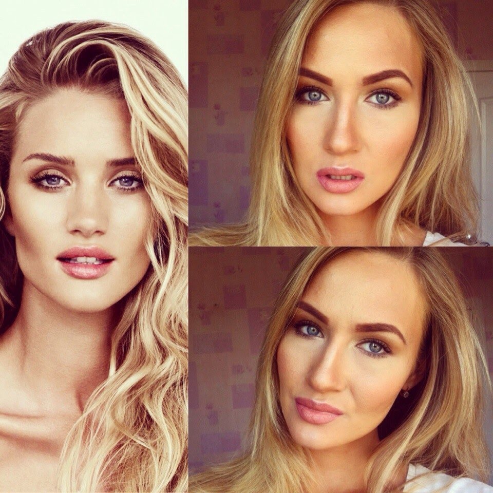 Блондинкам необходимо сделать контуринг лица. По бокам нужно нанести темный оттенок, чтобы визуально сузить лицо. На выступающие части лица (лоб, переносица, подбородок) наносится консиллер. Выделив скулы, можно сделать лицо визуально более худощавым, которое будет смотреться более эффектно. На все веко можно нанести нейтральные тени, а более темные использовать для того, чтобы сформировать стрелку.