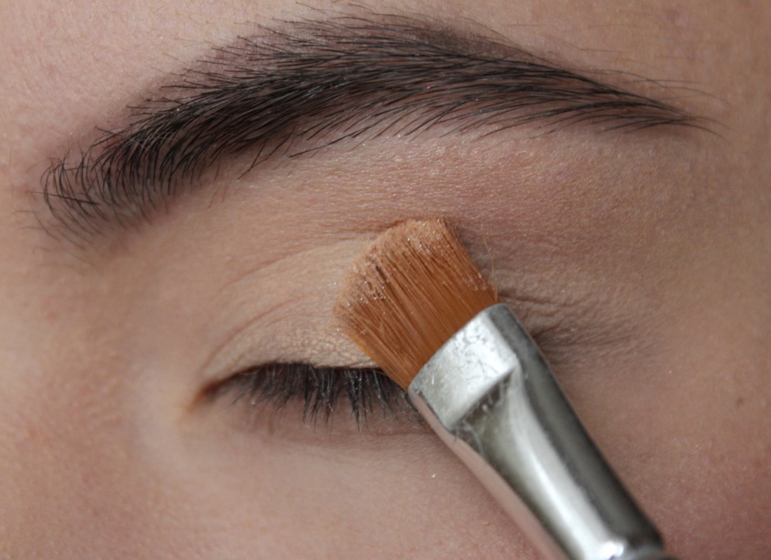 Растушуйте по всему веку базовый цвет: бежевый или светло-коричневый.
