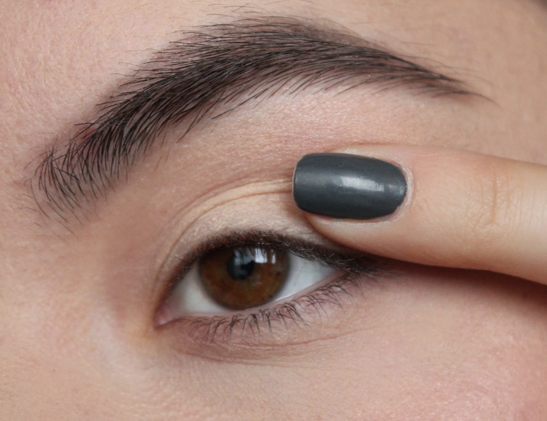 - На подвижное веко нанести тёмно-серые тени под базу.