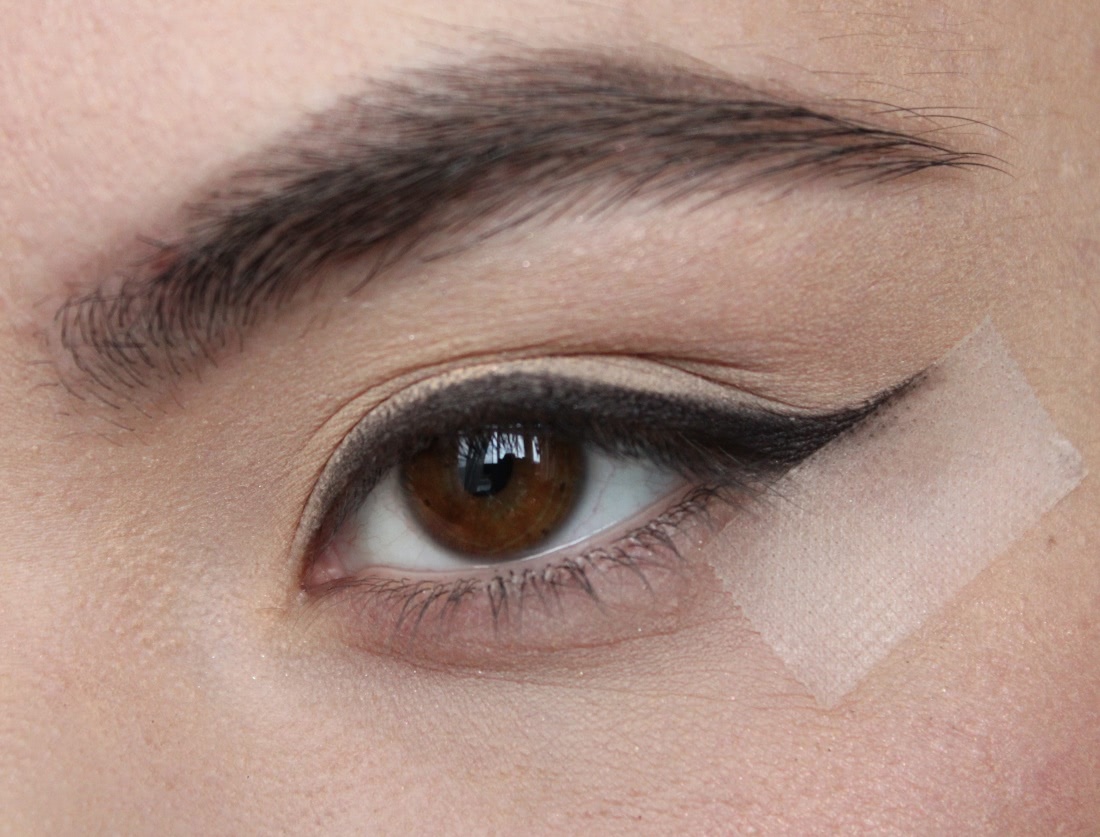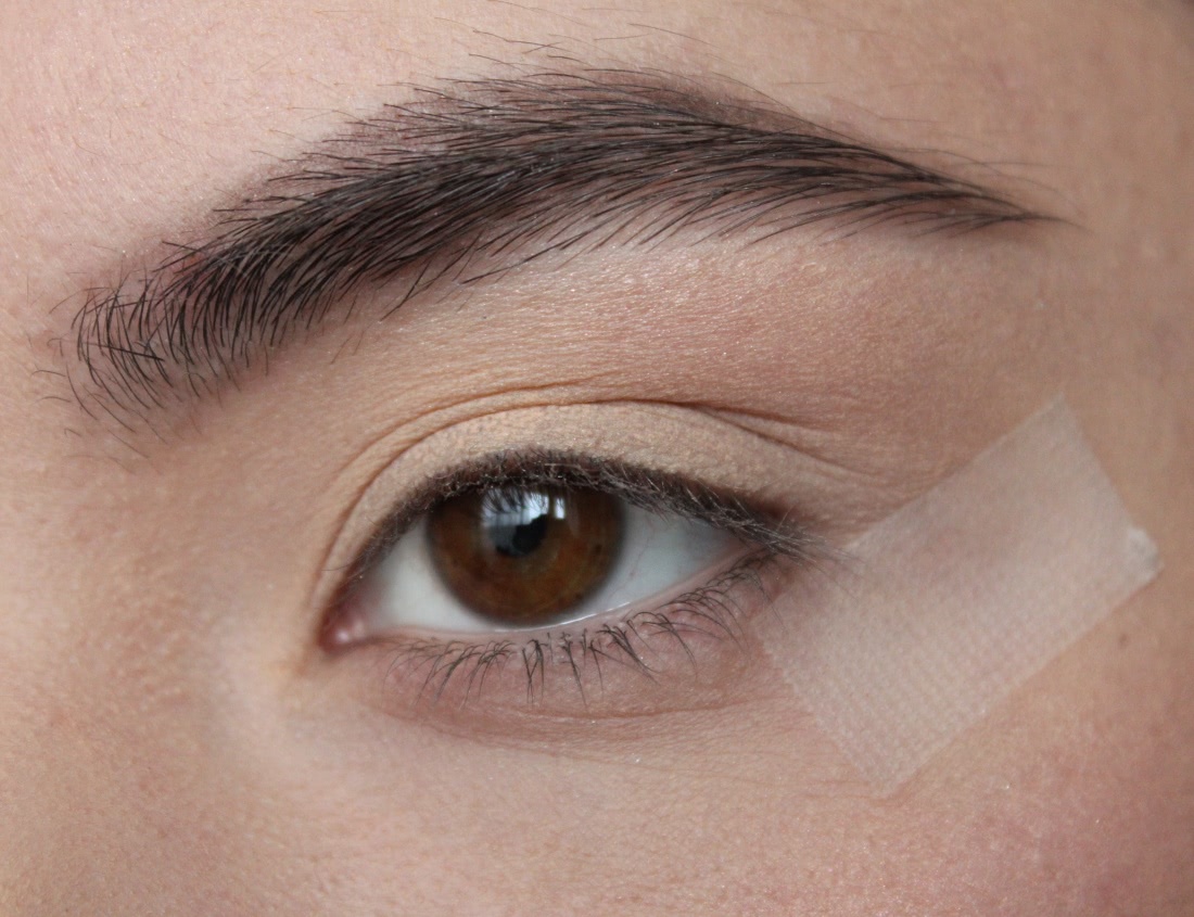 3. Далее клеим скотч (у меня гипоаллергенный пластырь, он более комфортный и не такой колючий ) заранее нужно пару раз приклеить/отклеить его на руку чтобы в дальнейшем не растягивать и не травмировать кожу. Клеим параллельно нижнему веку.