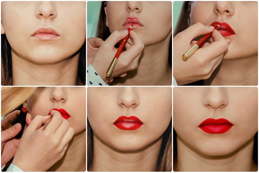 Совершая все эти операции, нельзя упускать из виду то обстоятельство, что неправильно нанесенный красный цвет способствует визуальному уменьшению объема губ.